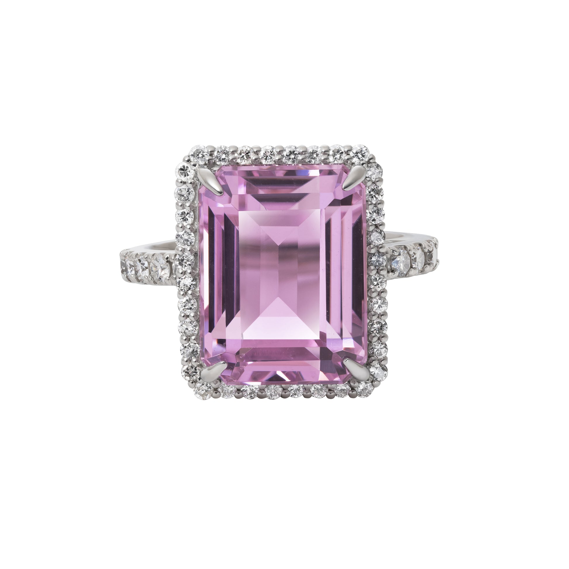 クリアな透明感、青みかかった大人のピンクのクンツァイトとダイアモンドが美しいリング。ホワイトゴールドと合わせることで、甘すぎずモード感を演出してくれます。